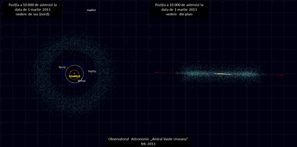 Majoritatea acestor fragmente, se găsesc între Marte și Jupiter, zona numita centura principală, între 2,1 și 3,3 Unităţi Astronomice (345 milioane - 495 milioane km) depărtare de Soare. În centura principală s-au descoperit 624.019 asteroizi (la data 16 februarie 2013) dintre care 9605 care se pot apropia de planeta noastră (asteroizi NEA - Near Earth Asteroid).